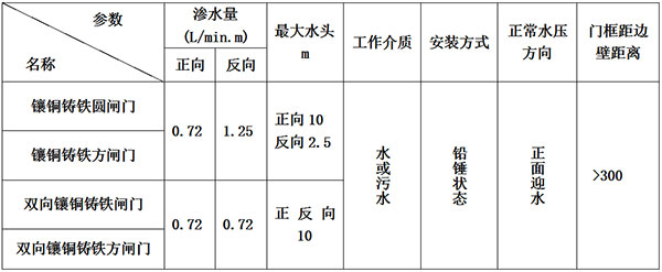 注:水頭超過(guò)10m的閘門(mén)需另外注明